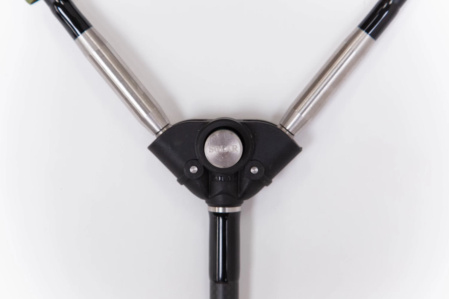 Voorzien van een robuust 3k carbon 2-delige steel(2x 6ft delen), een laser gegraveerde but cap, extra verstevigde armen en shrink wrap handgrepen, net als het paradepaardje de p1 versie.