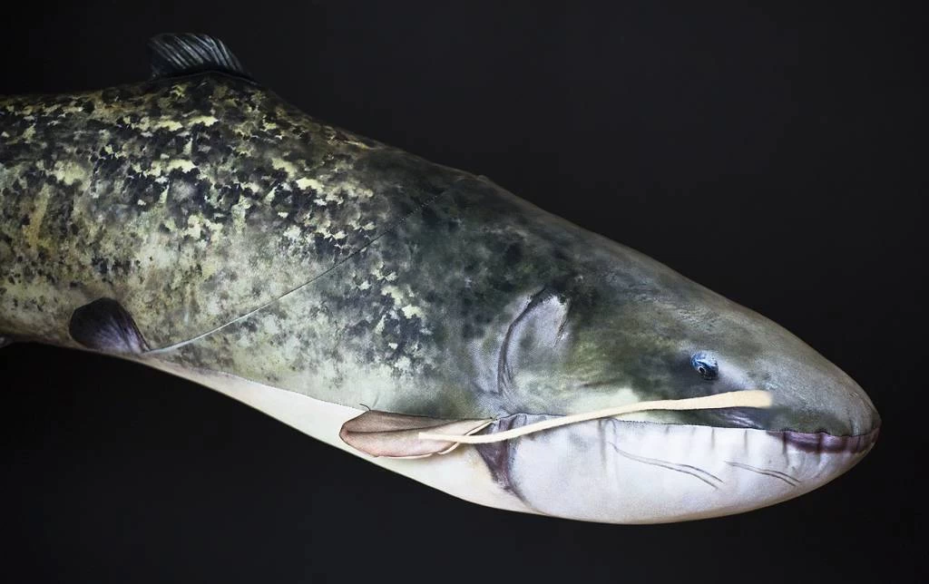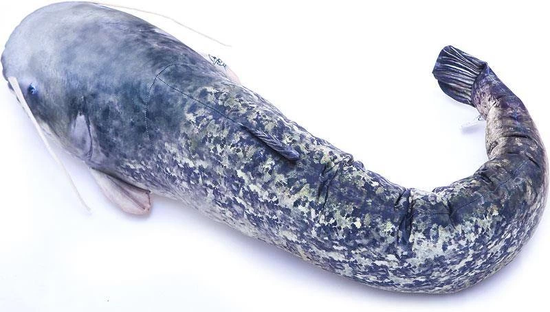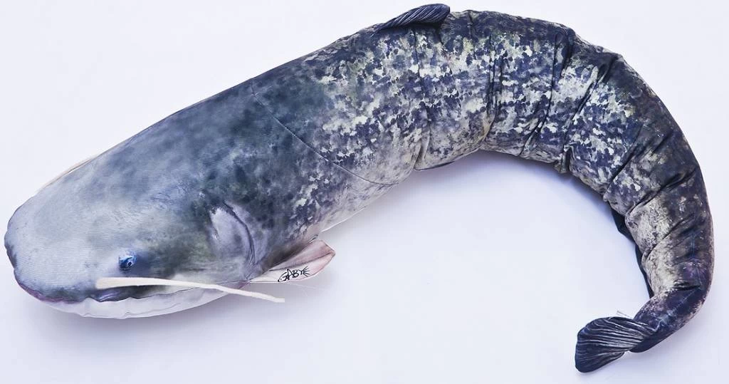 Dit gigantische kussen van het formaat van een reuze meerval zal indruk maken in je huis of aan de waterkant.