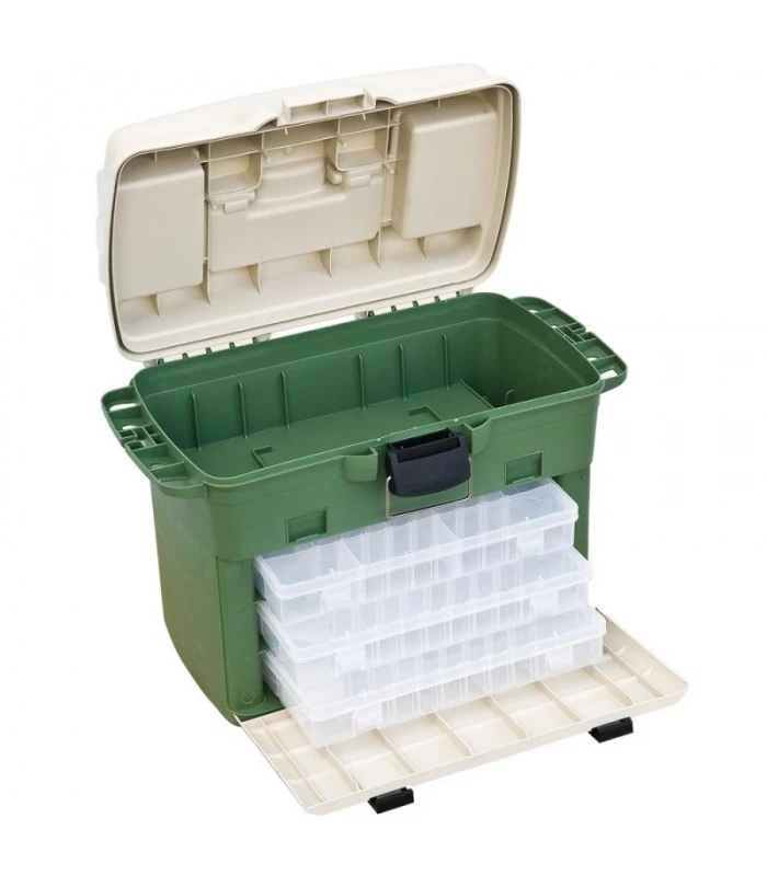 Oerdegelijke en mega sterke opbergkoffer met 5 uitneembare tackle boxen.