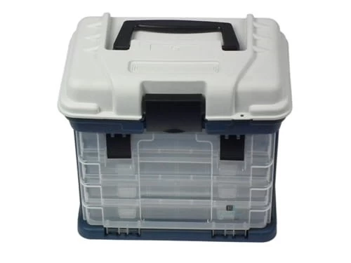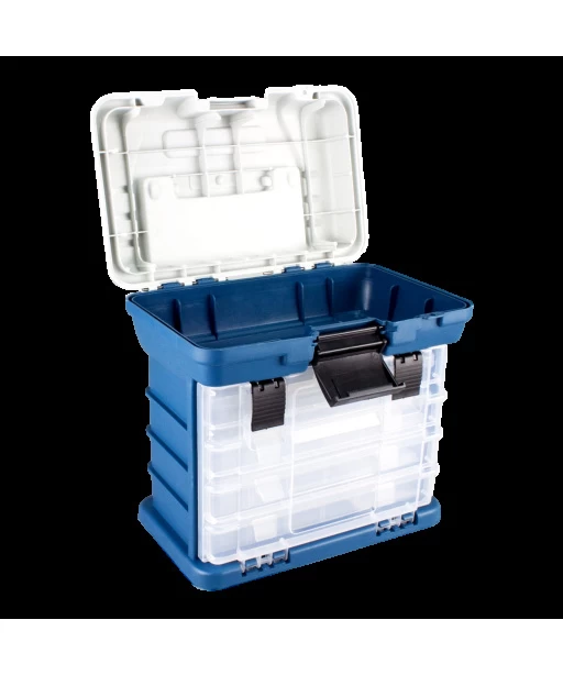 Voorzien van 4 tackleboxen van 28cm x 14cm