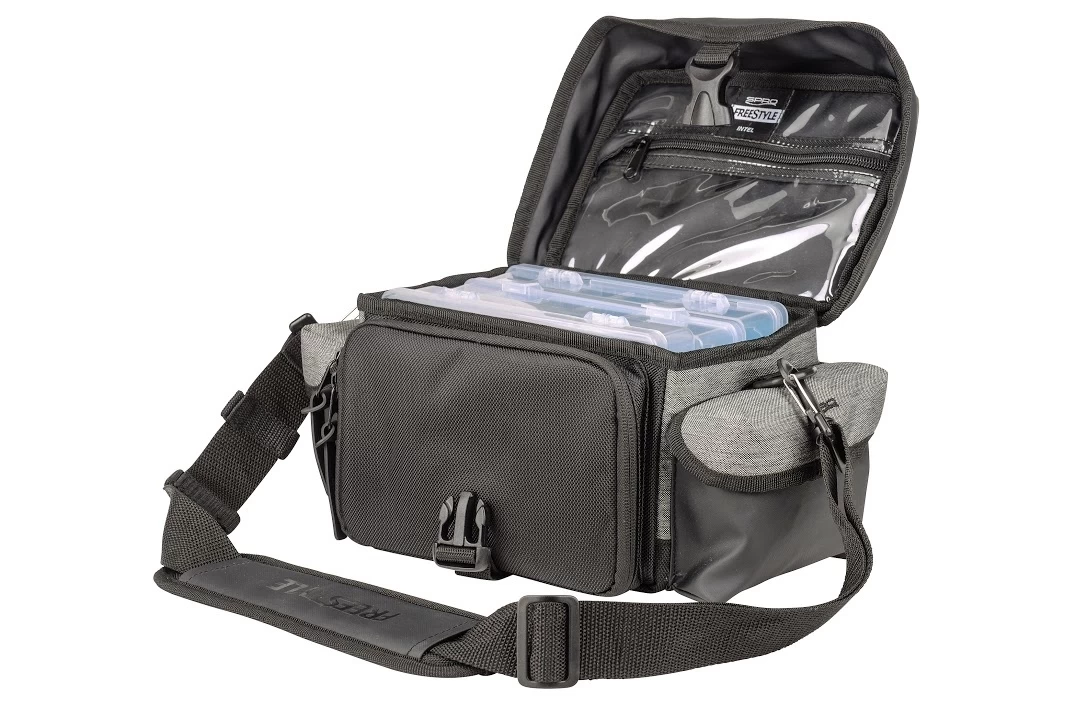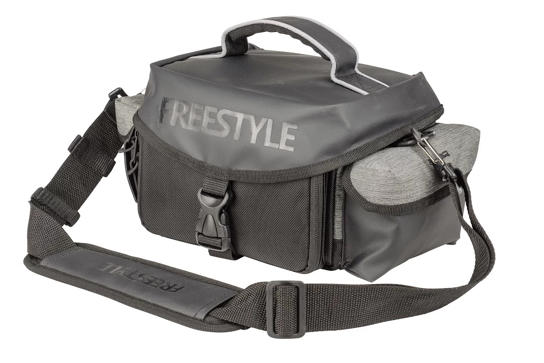 Deze schoudertas van spro is ideaal voor struinende vissers.