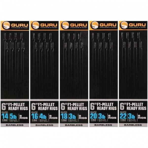 Guru f1 pellet pole rig 6” is een 15cm lange onderlijn, de onderlijn is geknoopt van guru n-gauge nylon speciaal voor de vaste stok visserij.