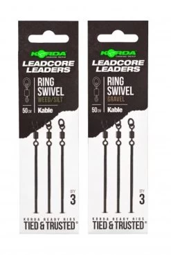 Elke leader is gemaakt van onze ongelooflijk sterke en snel zinkende kable leadcore, met een maat 8 ring swivel aan het ene uiteinde en een gesplitste lus aan het andere uiteinde zodat hij snel kan worden bevestigd en losgemaakt van je hoofdlijn.