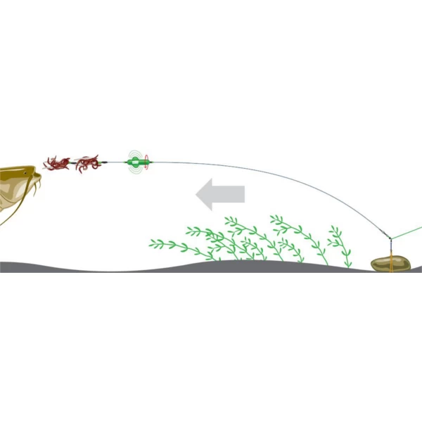 Deze kant-en-klare onderlijn is speciaal ontworpen voor het vissen op meerval met wormen in een stromende rivier.