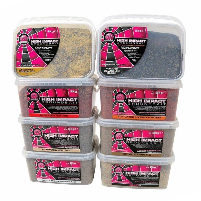 Mainline high impact groundbait bestaat uit een combinatie van gecrushte particles en noten et tevens uit smaakversterkers en stimulanten.