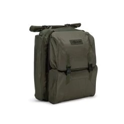 De eindcompartimenten zijn voorzien van een waterbestendige afwerking bovenaan om te voorkomen dat er water wordt opgenomen wanneer deze zijn uitgevouwen voor gebruik, terwijl het hoofd compartiment een geritst gedeelte heeft met een handige opbergruimte met vier kleine en twee grote elastische gaaszakken en de rugzak is compleet gevoerd met het nash micro camou vis patroon.