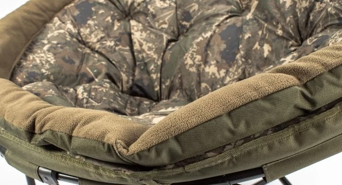 De beroemde indulgence moon chair comfort, nu geupdate met een micro fleece gevoerde zijkant en een indulgence logo in reliëf rond de luxe peachskin bedekte matras die in de unieke nash camo is afgewerkt.
