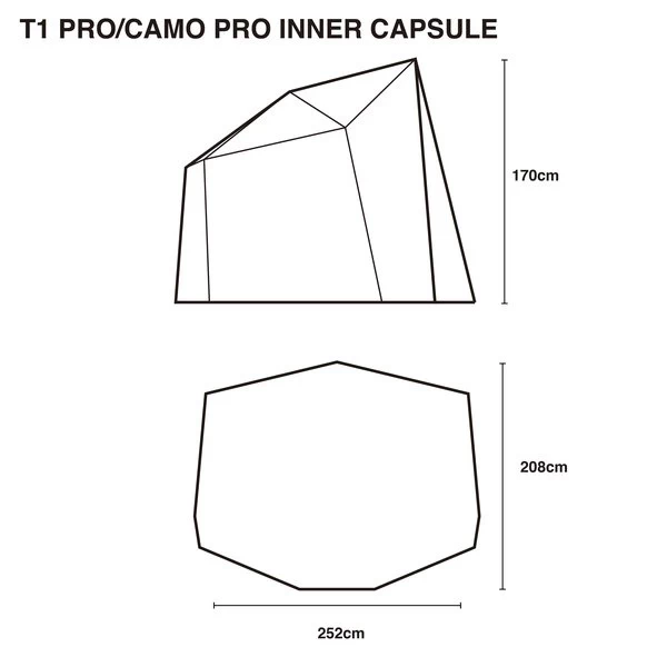 Interne muggengaas capsule: 170cm (h) x 252cm (b) x 208cm (d)