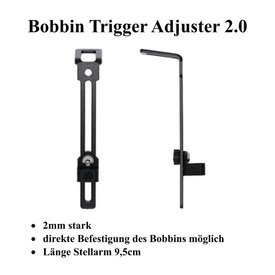 De tweede generatie bobbin trigger adjuster wordt geleverd als een pure zwarte editie.