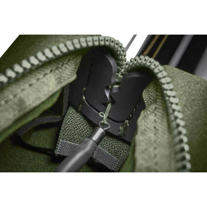 Leg aan het einde van uw sessie het hulpmiddel om te voeren of de marker float in de houder, plaats de leader of hoofdlijn voorzichtig in de speciaal ontworpen rubberen ring met rubberen sluiting, sluit de rits om het geheel vast te zetten en bevestig de klittenband sluiting door het grootste oog op het bovenste gedeelte van de hengel.
