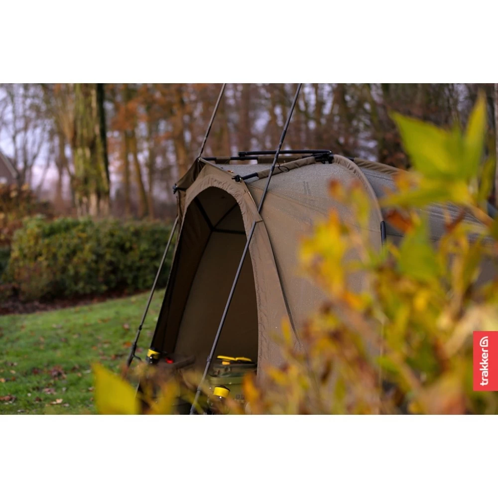 De shelter is verkrijgbaar als modulair systeem met optionele extra’s, waaronder twee verschillende infill-panelen die je aan de voorkant van de brolly kunt vastritsen.